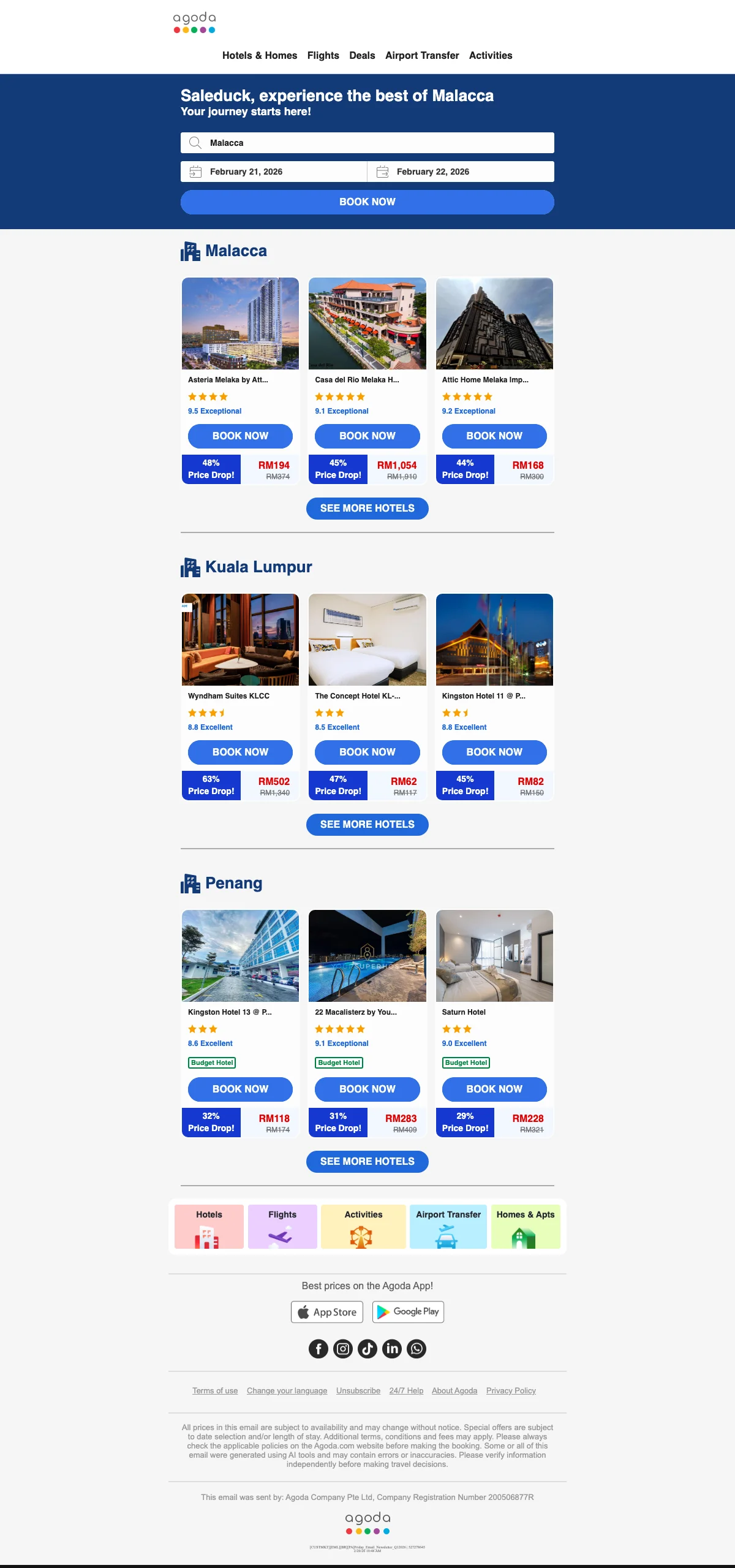 Agoda price drop 45% off Malacca hotels save now from RM127