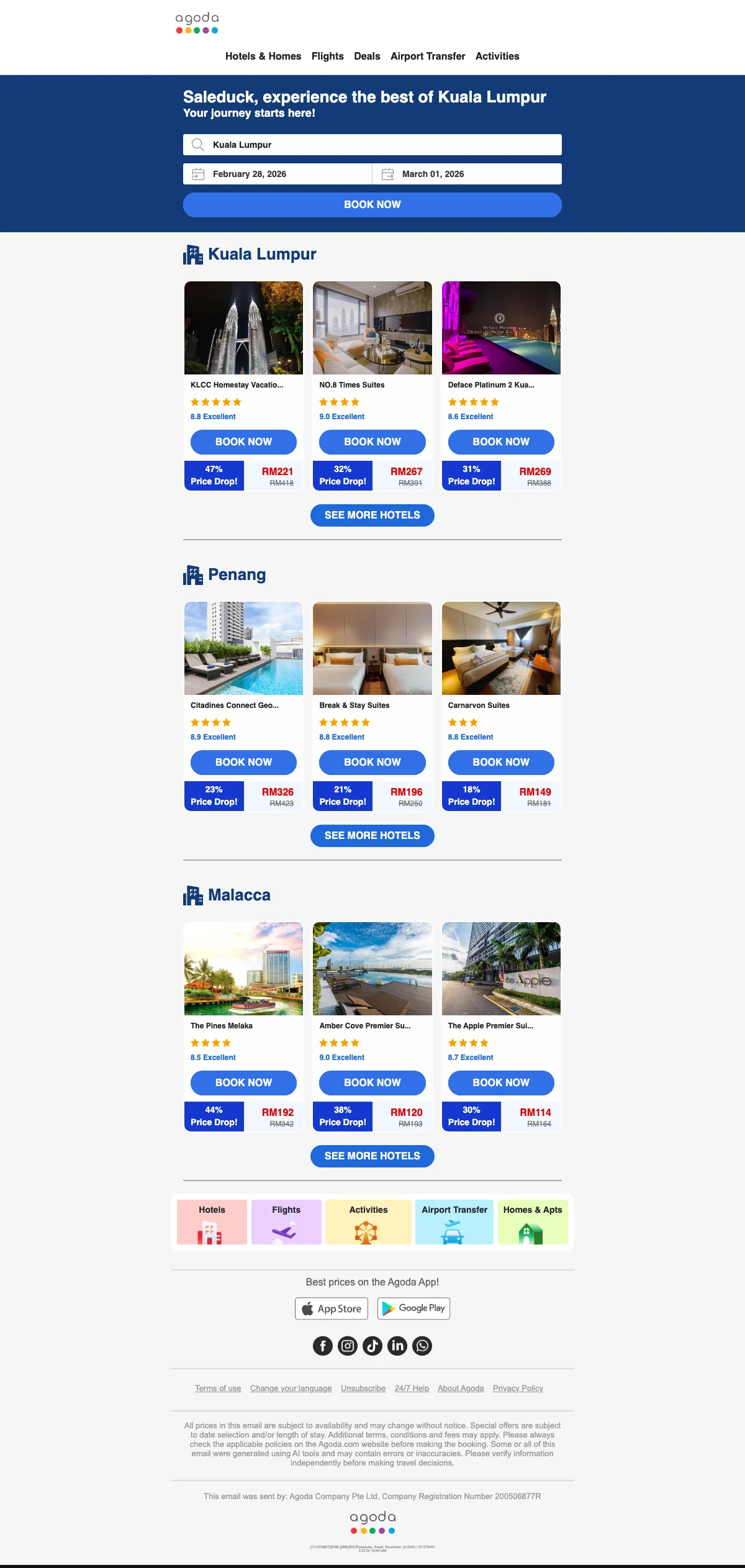 Saleduck Agoda price drops — up to 43% off hotels in Kuala Lumpur