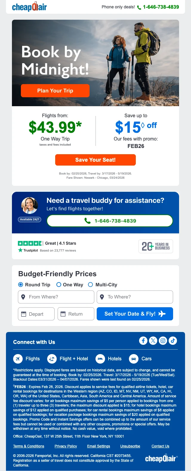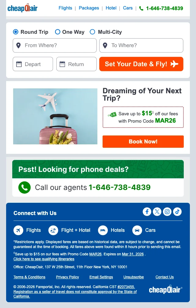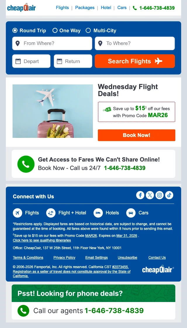 Cheapoair phone-only promo code: exclusive discount when calling