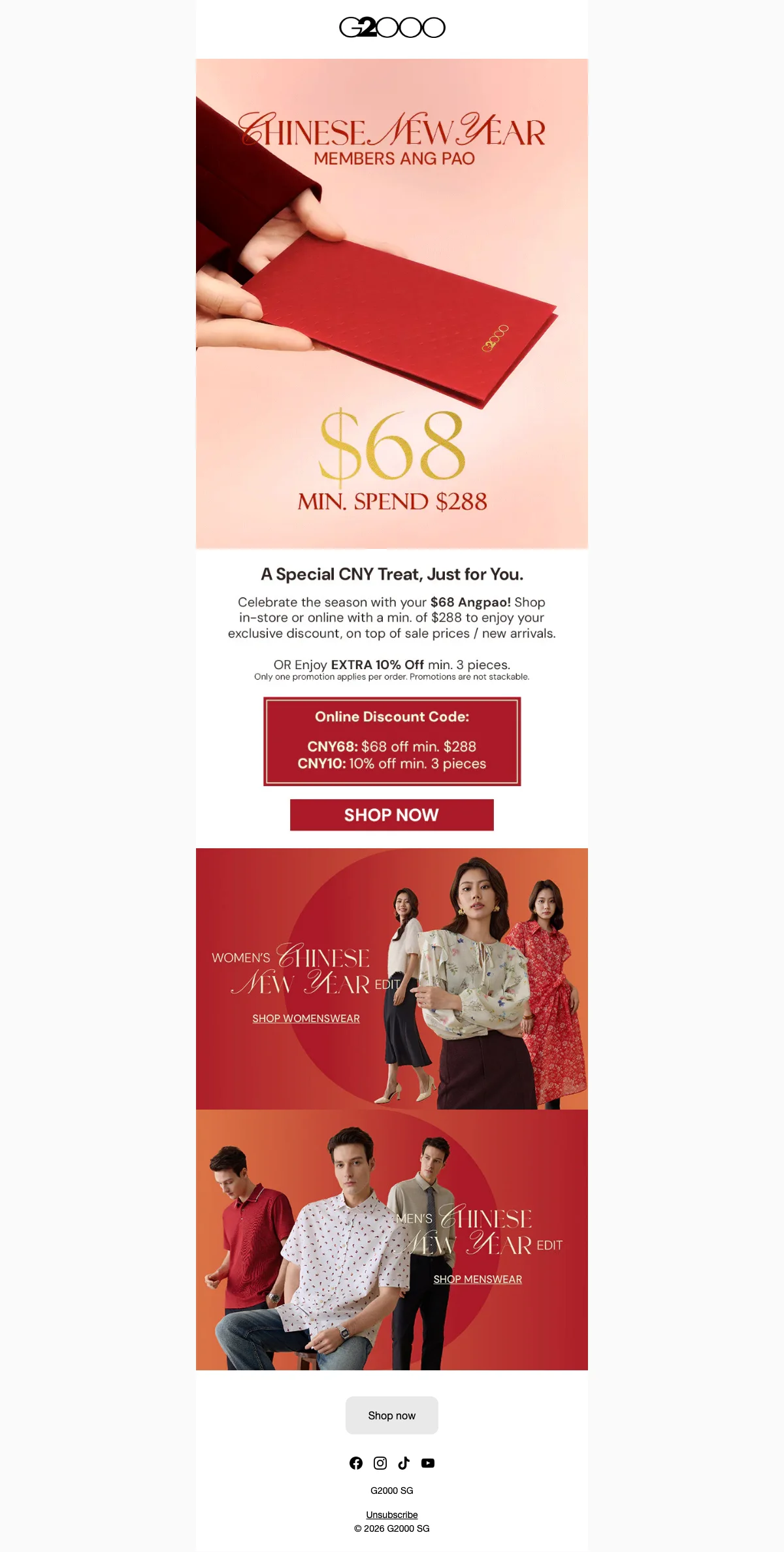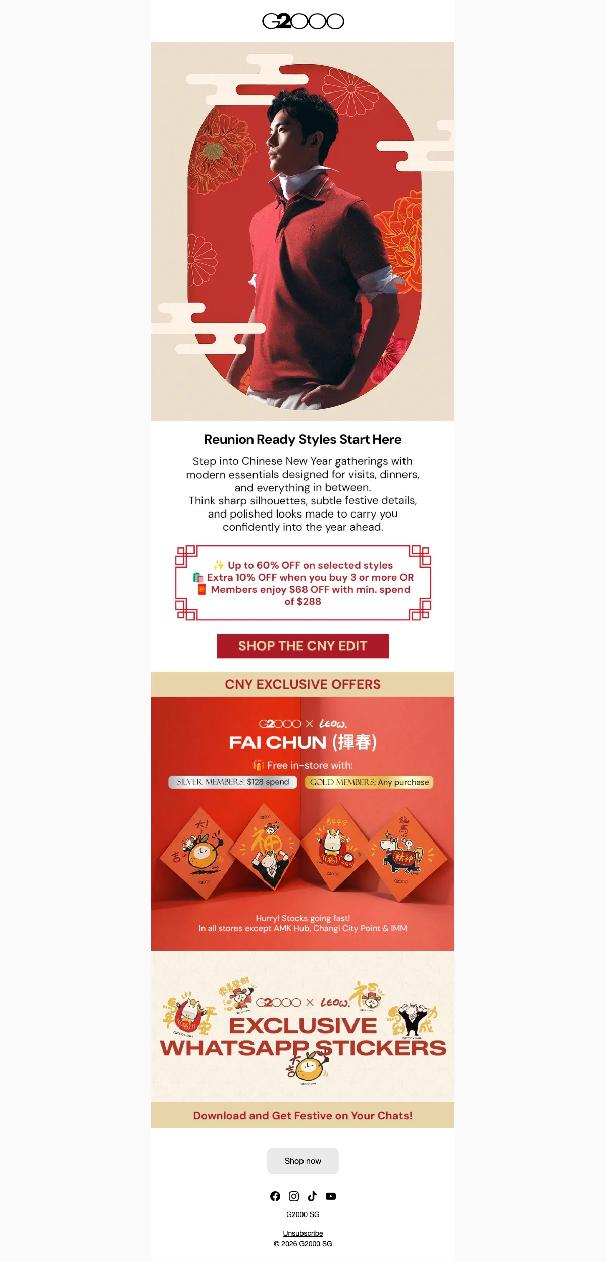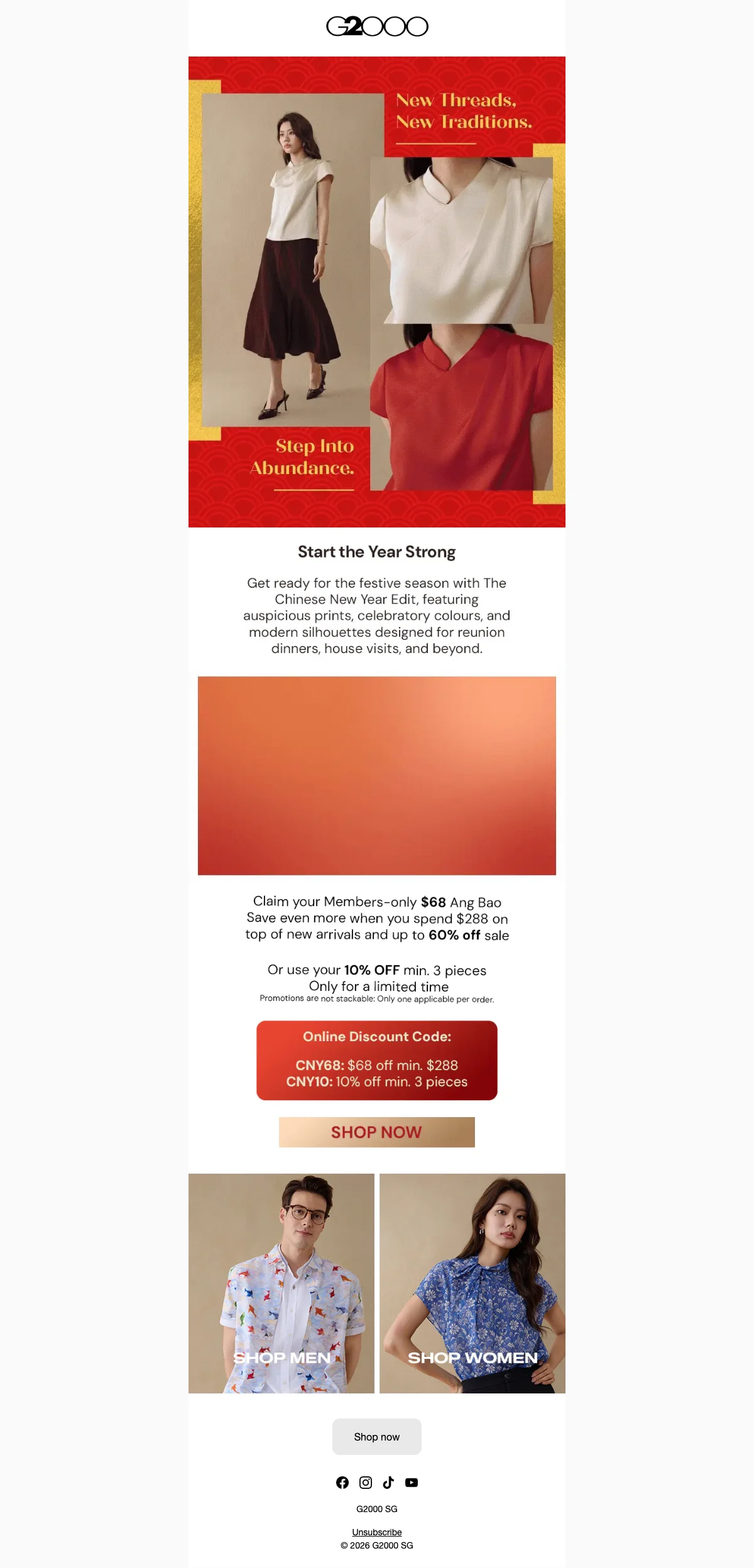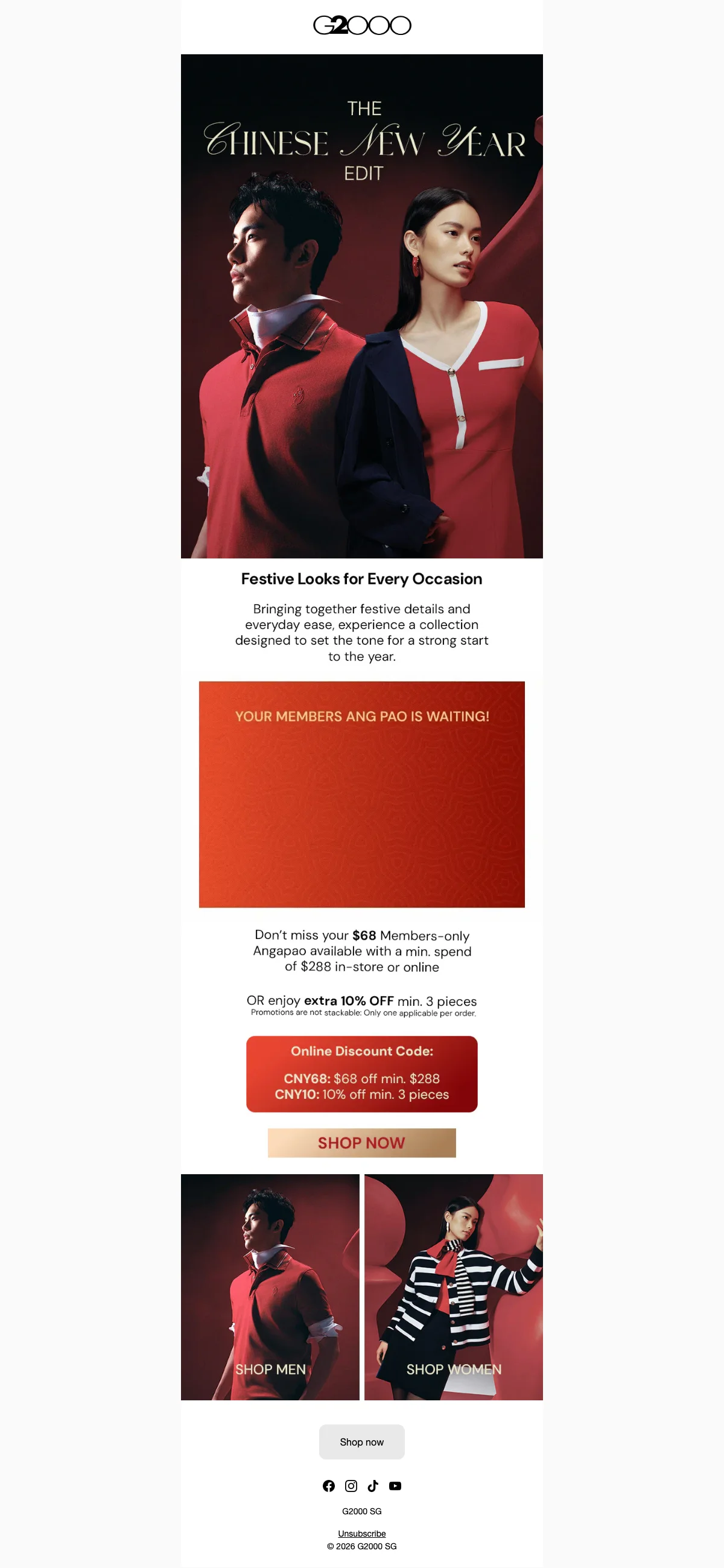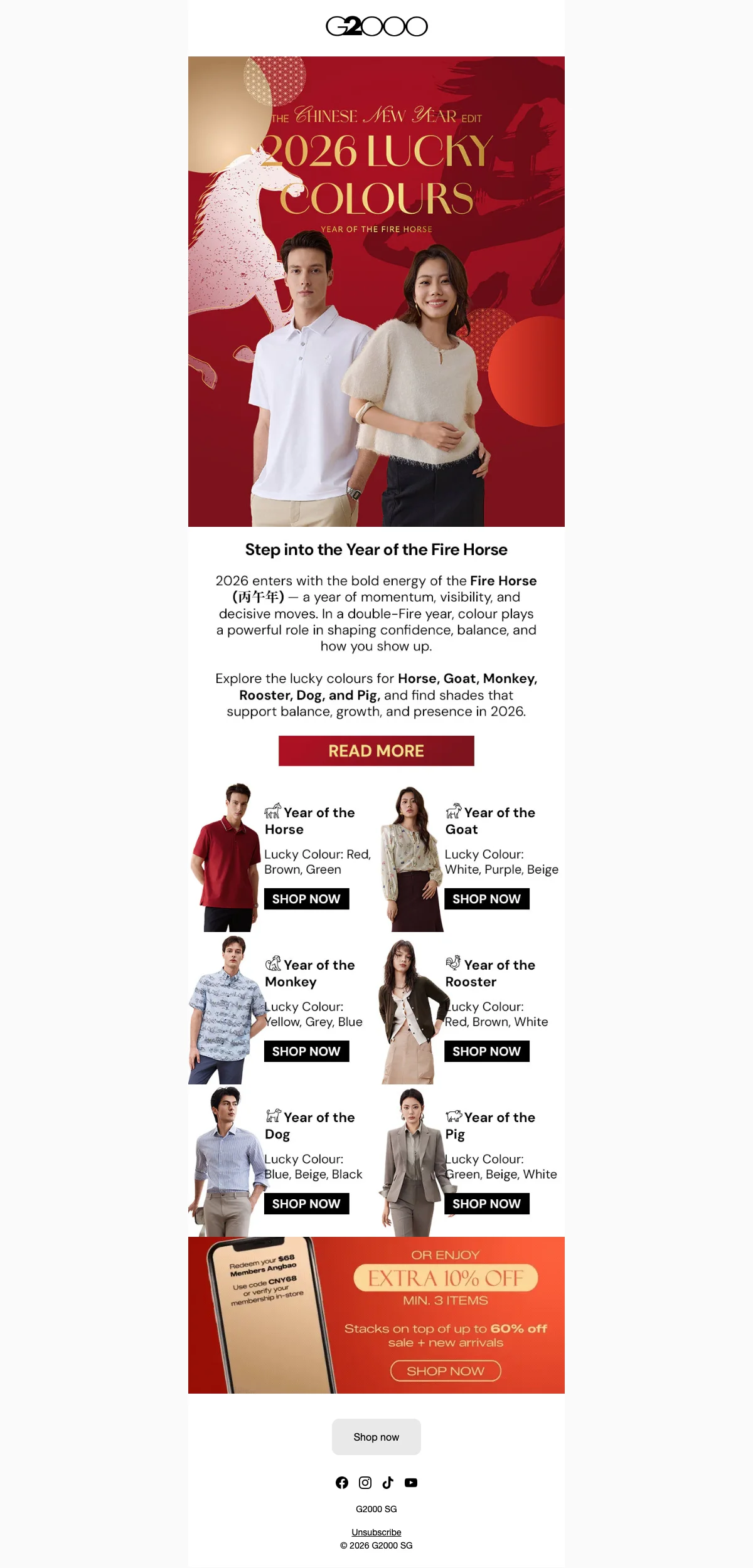 G2000 CNY sale up to 60% off sitewide + extra savings