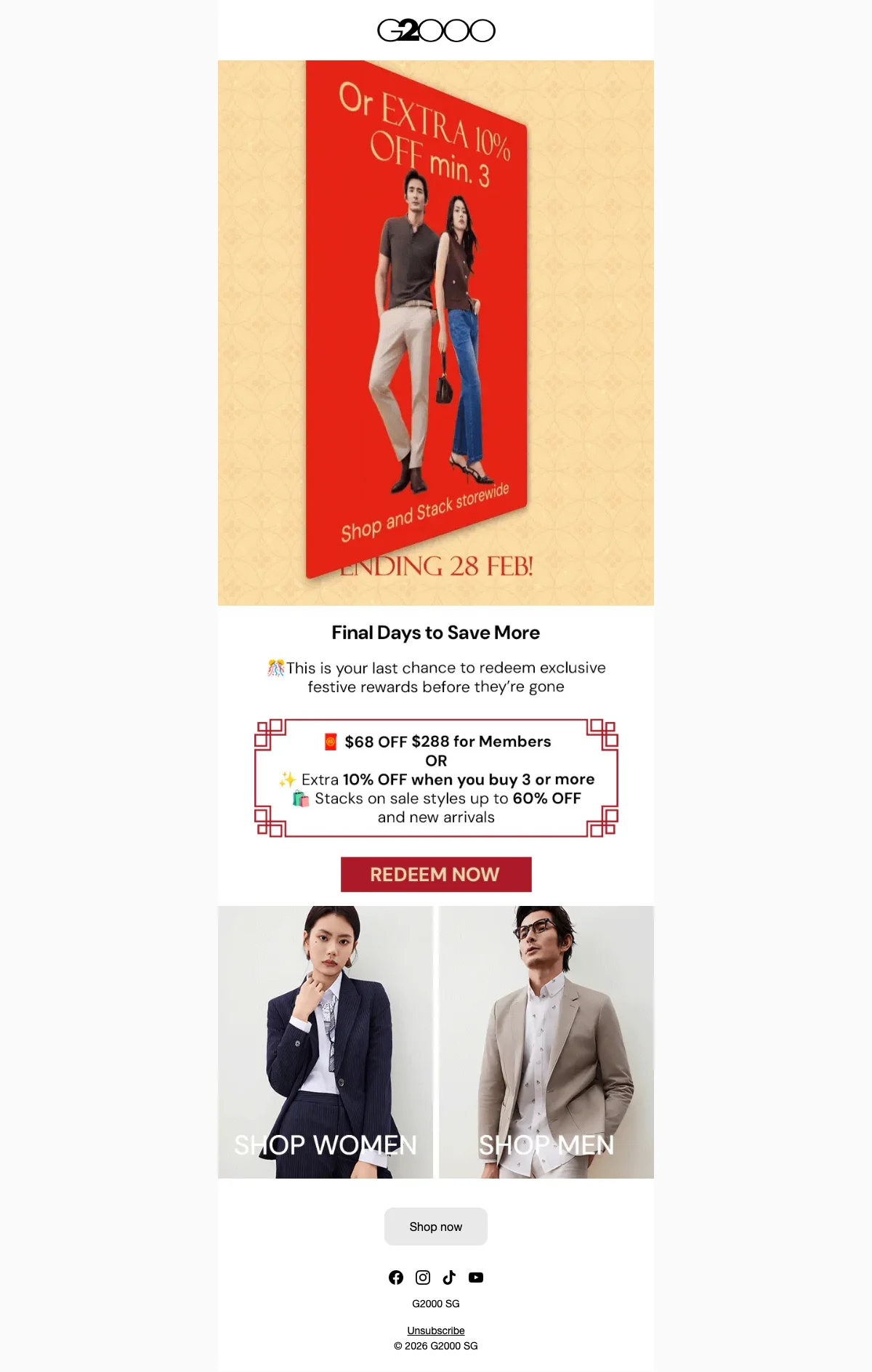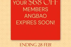 Get $68 off a purchase with the member angbao, applied as a straight discount to your total. Redeemable online and in-store, so use it during checkout or at the register while the angbao is still valid.