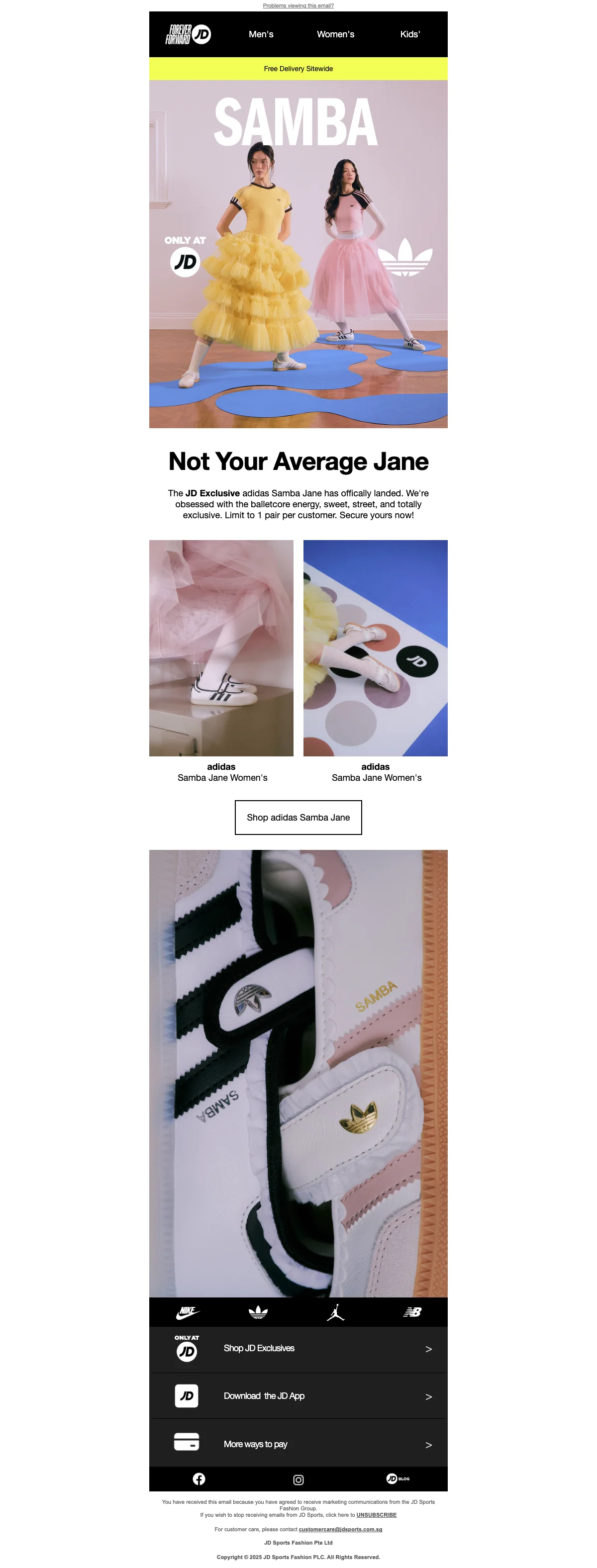 Do you enjoy their seasonal promotions to get their products at an even more discounted price? At JD Sports outlet, you will be able to find more discount codes and other deals that you can enjoy on their Black Friday Sale, Year-End-Sale, and during their Christmas sale. So, you don't have to stress your mind thinking of which season to shop during, to be saving on their products. Although there is no JD Sports Student Discount in Singapore anymore, students can still enjoy various sale products in the sale section, which gives you discounts of up to even 50% sometimes! Isn't that amazing?! Go ahead and collect all the JD Sports Singapore discount codes you can to save on your purchases!